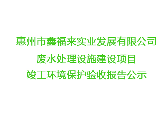 惠州市鑫福來實業(yè)發(fā)展有限公司廢水處理設(shè)施竣工環(huán)境保護(hù)驗收報告公示